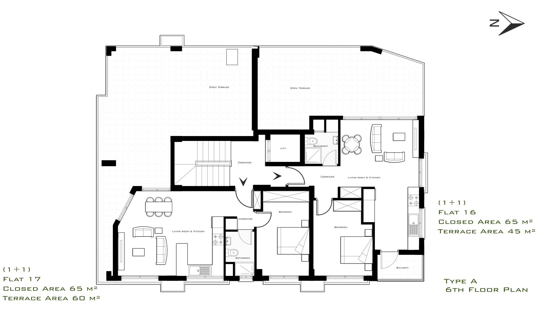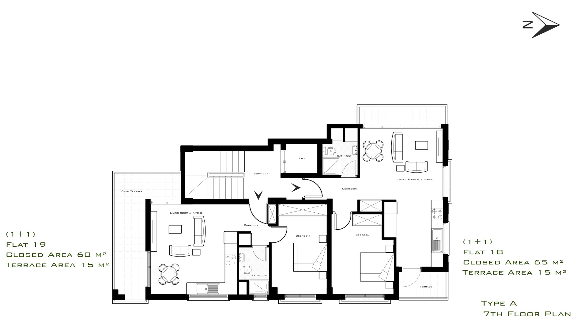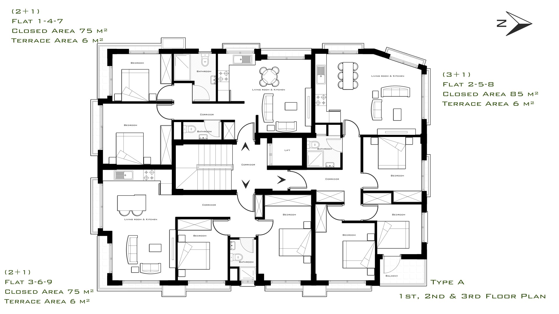 Apartment Options 1+1, 2+1 and 3+1 apartment alternatives.