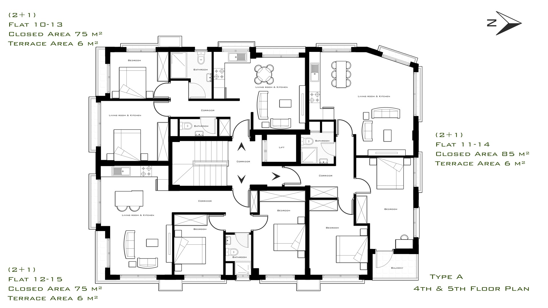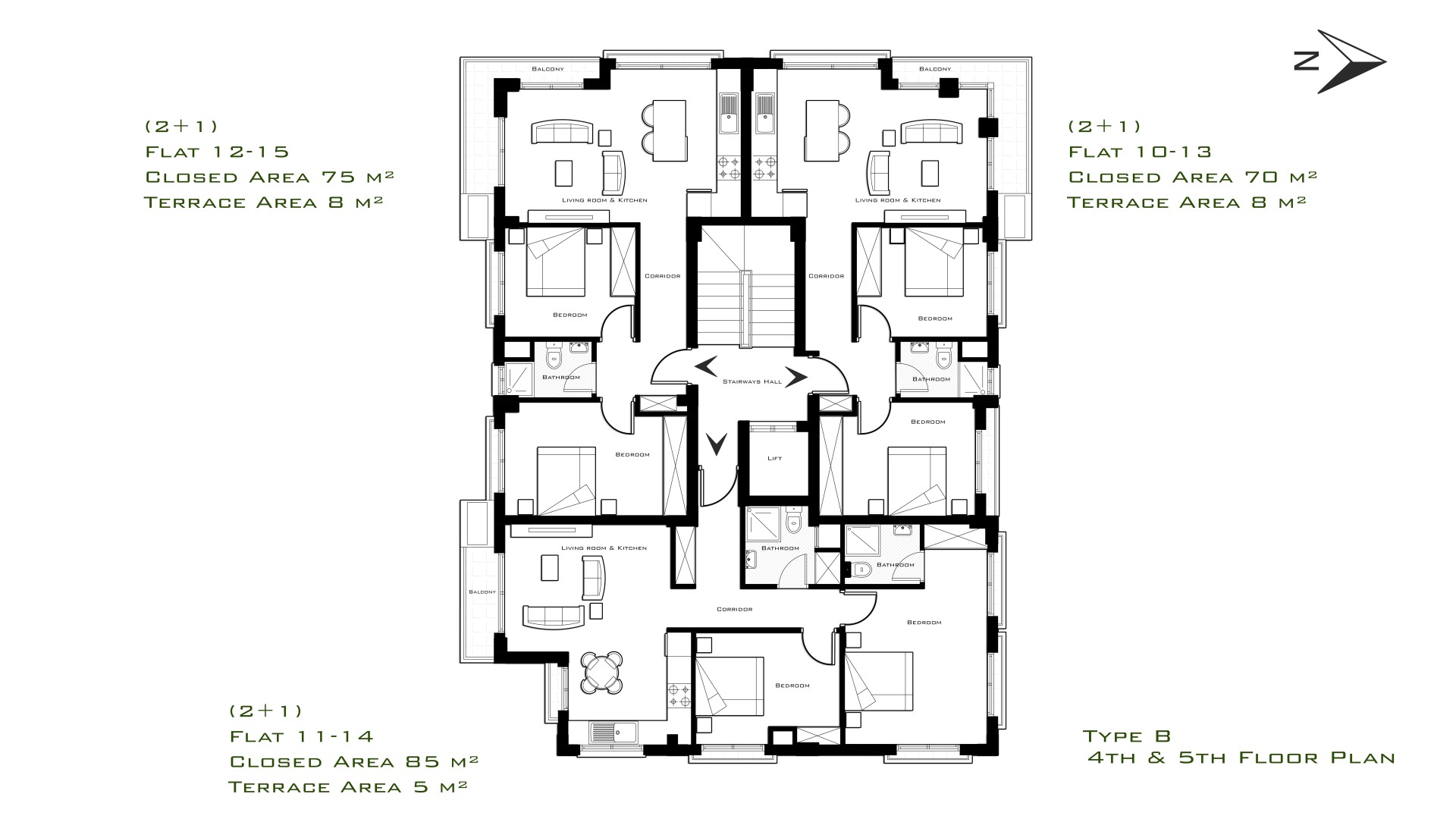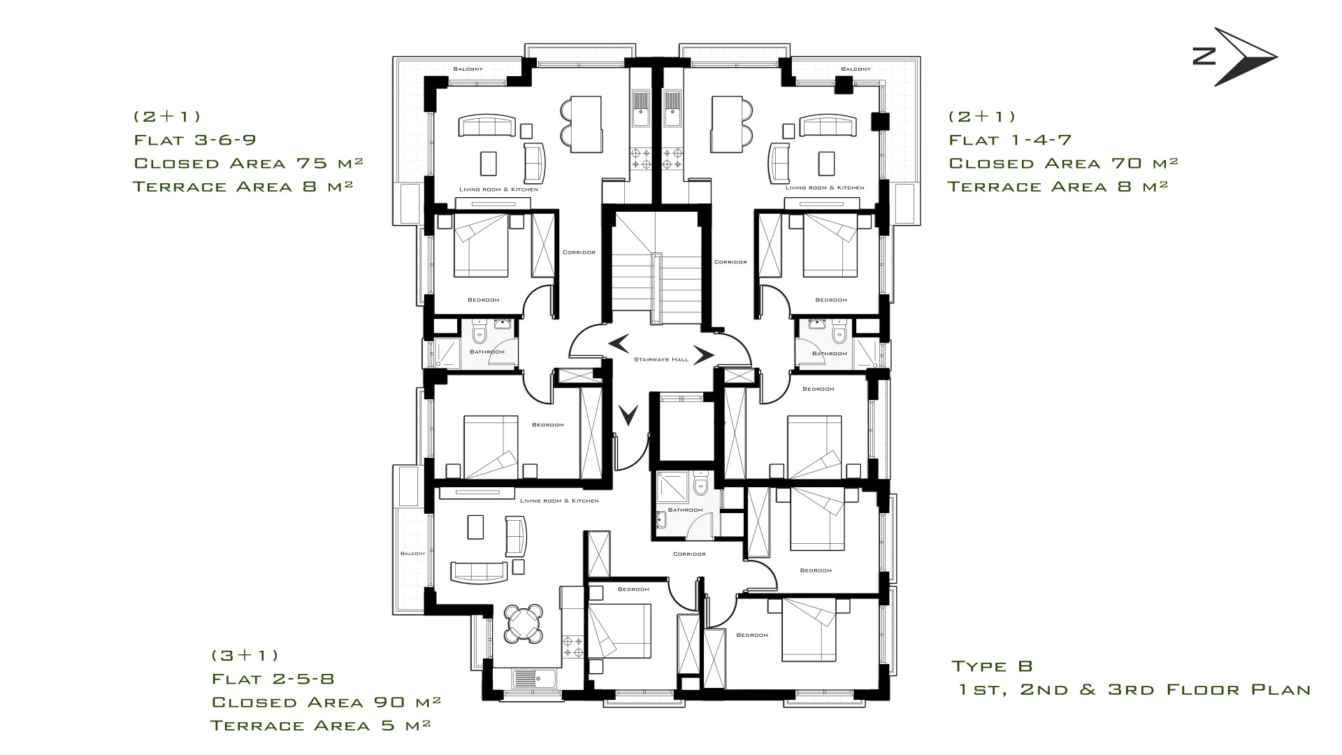 Apartment Options 1+1, 2+1 and 3+1 apartment alternatives.