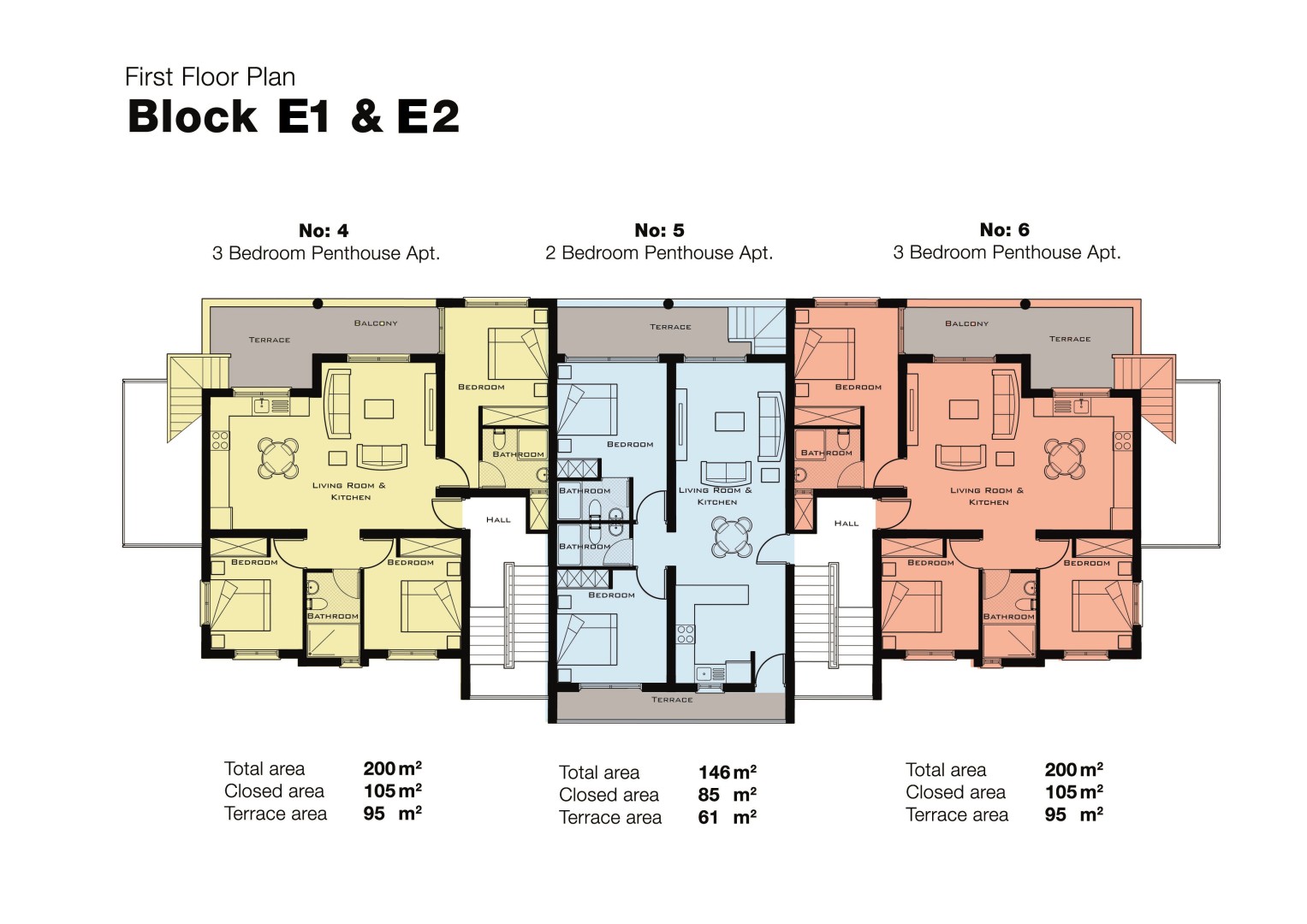 The project consists of 48 apartments in 10 blocks overlooking panoramic views of the sea.