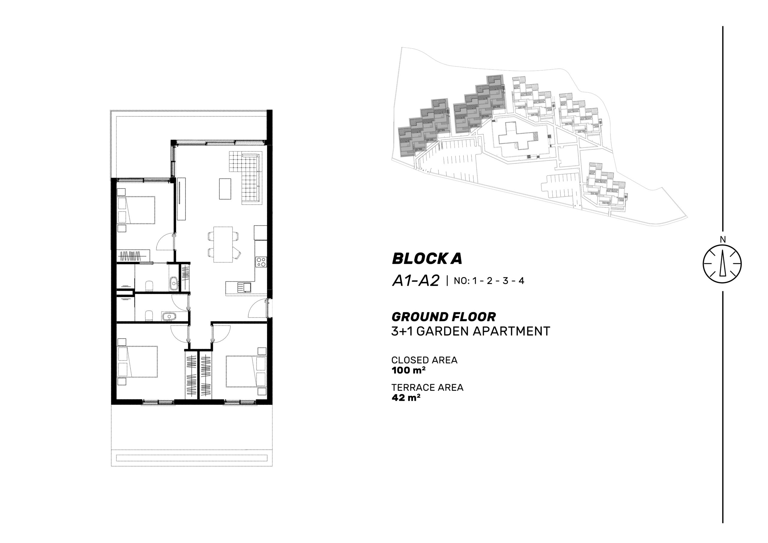 The project offers 1 bedroom, 2 bedroom, and 3 bedroom apartment types, designed to meet different lifestyle and investment preferences. Garden floor apartments feature spacious private terraces, while penthouse units stand out with exclusive rooftop terrace access.